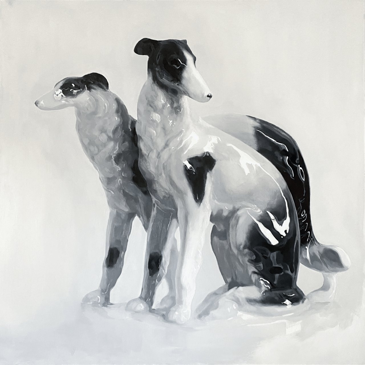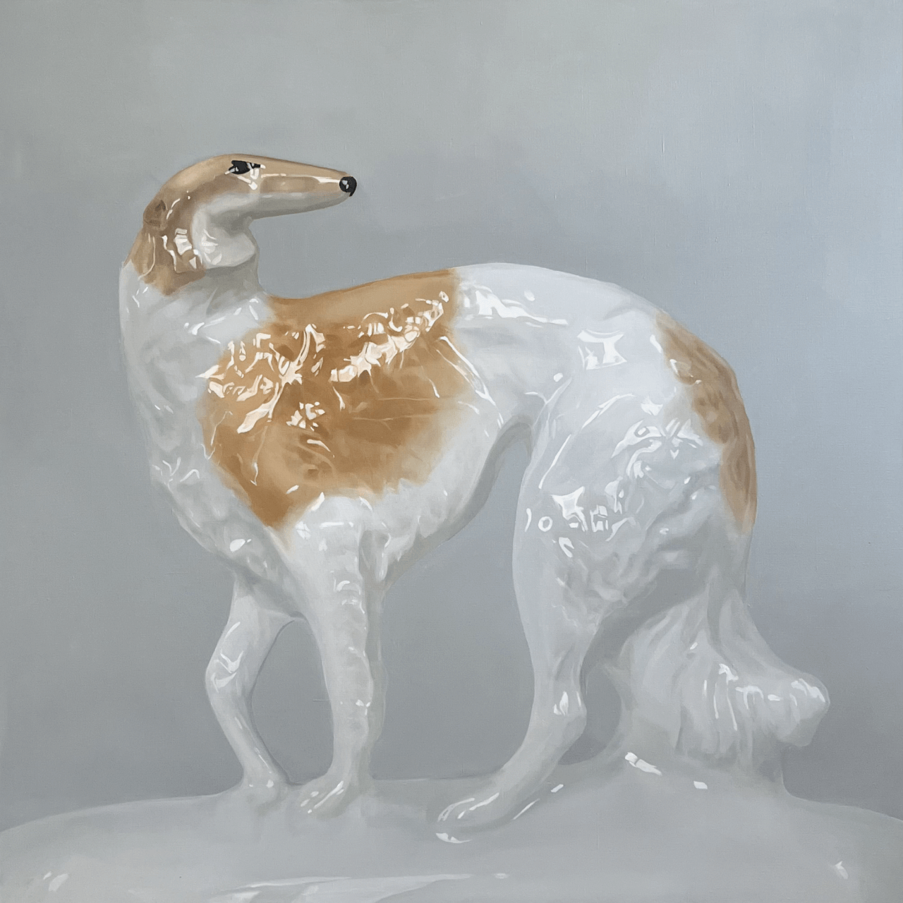 “Each of these ceramic figurines is a memory of particular people and events. My previous partners were at times despotic and expected me to be accommodating. I would much prefer to paint beautiful naked men in beautiful poses, but the relationships would end before the work on the paintings started. That’s how ceramic dogs have become portraits. I love luxury, craftsmanship, and beauty - it’s a bit baroque, but at the same time minimalistic. ’ve been painting these pieces for none other than myself. I wanted to have beautiful things at home. Luxury to me is when only one thing is depicted on a big canvas. My sense of beauty really differs from my parents’. I’ve enjoyed seeing the beauty in simple things, like ceramic figurines since my childhood; I liked that others loved them as well. My mother loved ceramic lynx, and I liked that she loved it; so I associate these figurines with adoration.”