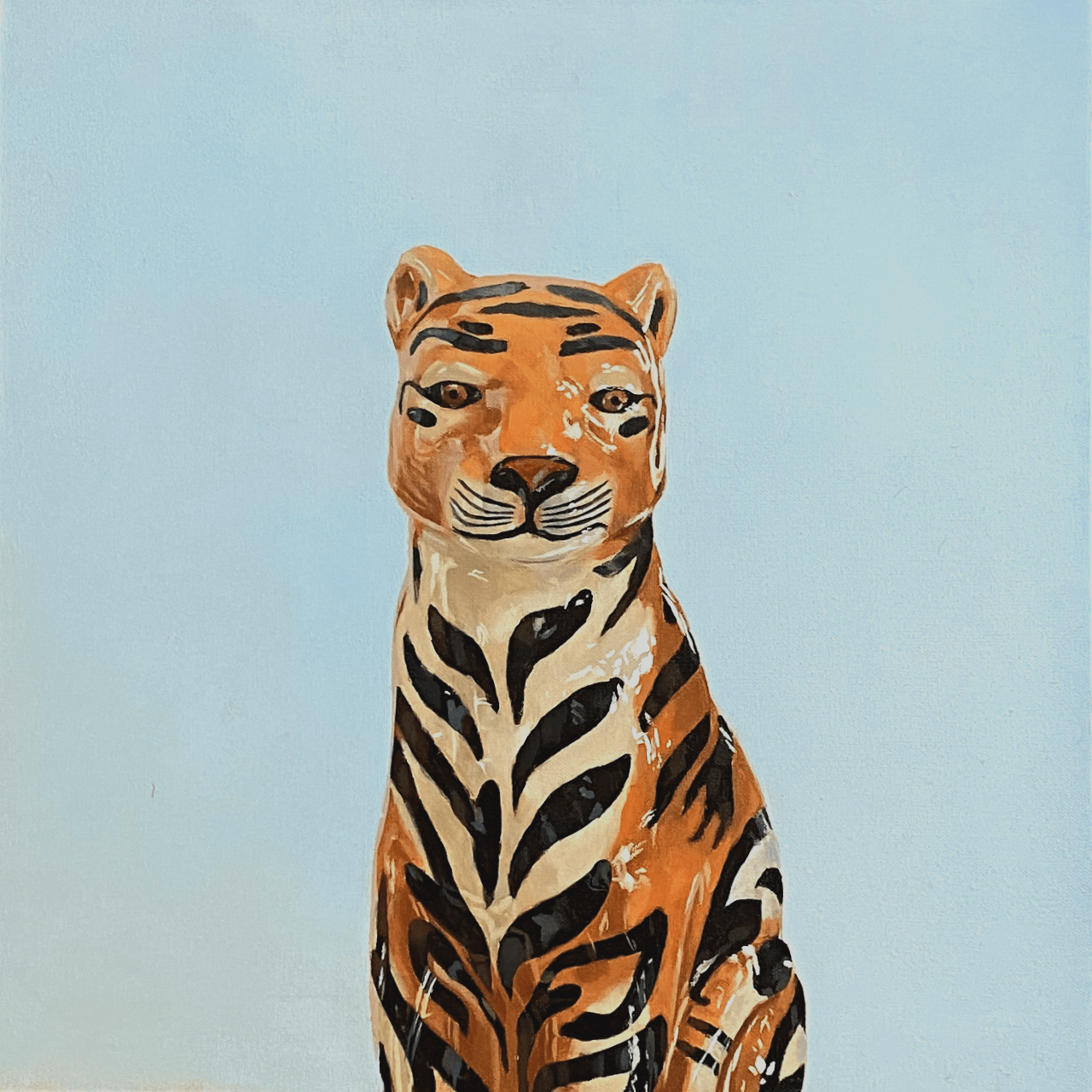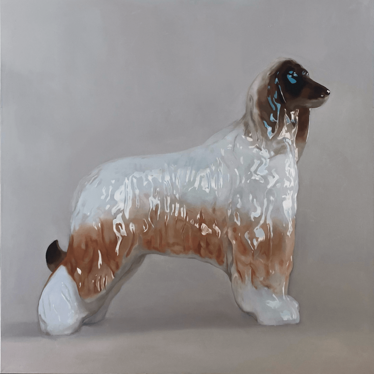 “Each of these ceramic figurines is a memory of particular people and events. My previous partners were at times despotic and expected me to be accommodating. I would much prefer to paint beautiful naked men in beautiful poses, but the relationships would end before the work on the paintings started. That’s how ceramic dogs have become portraits. I love luxury, craftsmanship, and beauty - it’s a bit baroque, but at the same time minimalistic. I’ve been painting these pieces for none other than myself. I wanted to have beautiful things at home. Luxury to me is when only one thing is depicted on a big canvas. My sense of beauty really differs from my parents’. I’ve enjoyed seeing the beauty in simple things, like ceramic figurines since my childhood; I liked that others loved them as well. My mother loved ceramic lynx, and I liked that she loved it; so I associate these figurines with adoration.”